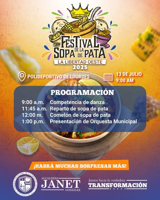 El próximo domingo 13 de julio, el Polideportivo de Lourdes será el escenario de una de las celebraciones más esperadas del año en La Libertad Oeste: el Festival de la Sopa de Pata 2025.