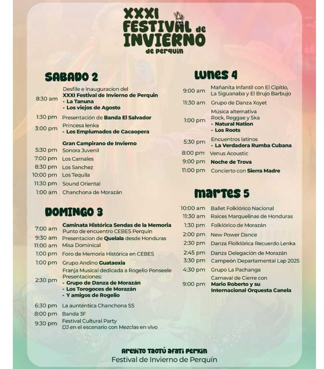 Con cada edición, el Festival de Invierno refuerza su papel como espacio de encuentro, expresión y memoria. Perquín se reafirma no solo como cuna de la cultura morazánica, sino como un destino donde confluyen el arte, la historia y la naturaleza.