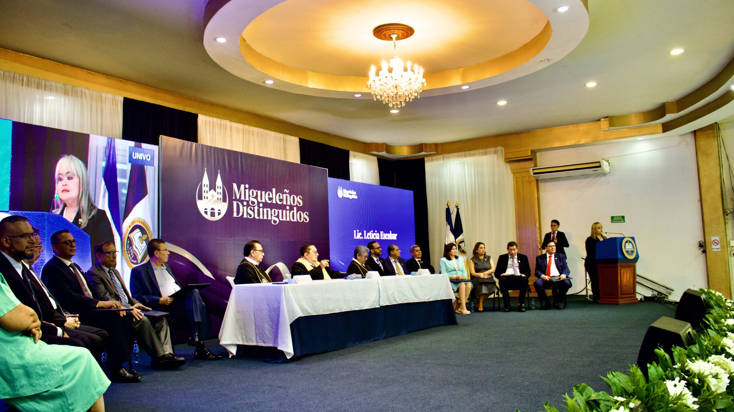 La Universidad de Oriente (UNIVO) realizó la ceremonia de reconocimiento Migueleños Distinguidos 2025, en la que se rindió homenaje a personalidades destacadas por su trayectoria profesional, académica, empresarial, tecnológica y humanitaria, cuyo trabajo ha contribuido significativamente al desarrollo de San Miguel y la región oriental.