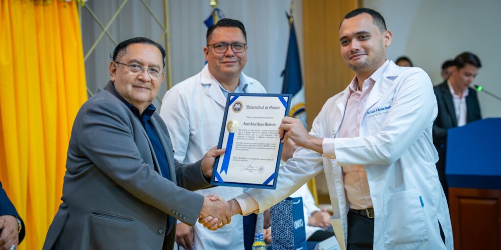 La Universidad de Oriente (UNIVO), a través de la Facultad de Ciencias de la Salud, llevó a cabo un acto solemne en honor a los doctores que obtuvieron calificaciones destacadas en el Examen Nacional de Aspirantes a Residencias Médicas (ENAR 2025).