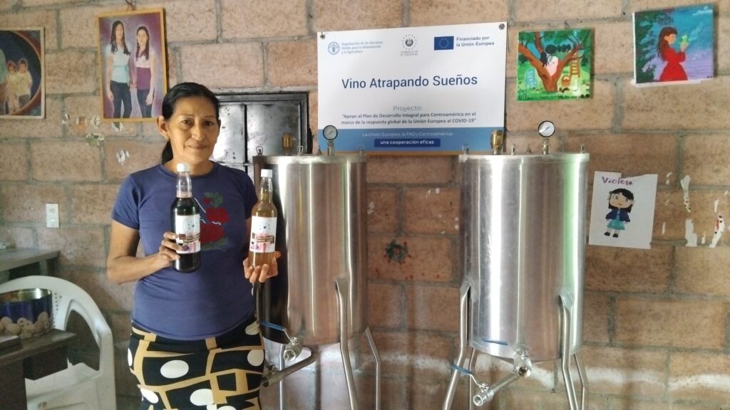 Este proyecto nació gracias al apoyo de la Unión Europea y la FAO, a través del programa “El mejoramiento de vida”. Durante dos años, Lorena y otros emprendedores recibieron capacitaciones orientadas a fortalecer la economía local y generar oportunidades para las familias. Además, la FAO proporcionó herramientas clave para iniciar el negocio, como fermentadores especializados para la producción de vino.